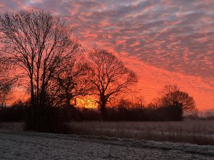 But gradually and discernibly the light is returning, the dark of the year receding. On the rare days when the cloud breaks the light is of a different quality from a month back; it casts the landscape in the pastel shades of very early spring. On one such day, as the dog and I crossed a field, a flock of fieldfares took off from the ground where they had been feeding. The sunlight caught the pale underside of their wings – a hundred flashes of light – and they were gone.